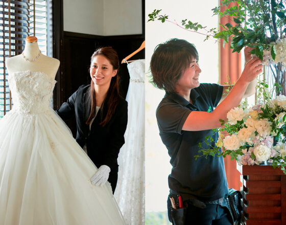 はじめて会場見学をするお二人にオススメ。先輩カップルのこだわり会場コーディネートを参考にしてウエディングイメージを膨らましてみよう。経験豊富なプランナーがご案内します。