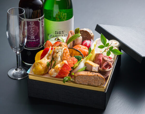 お料理はもちろん、スパークリングワイン、ぶどうジュース、シャンパングラスもオンラインゲストへお届けします