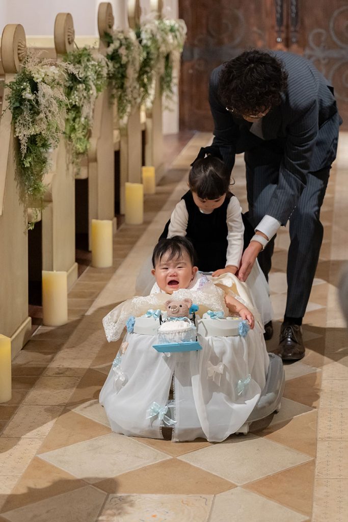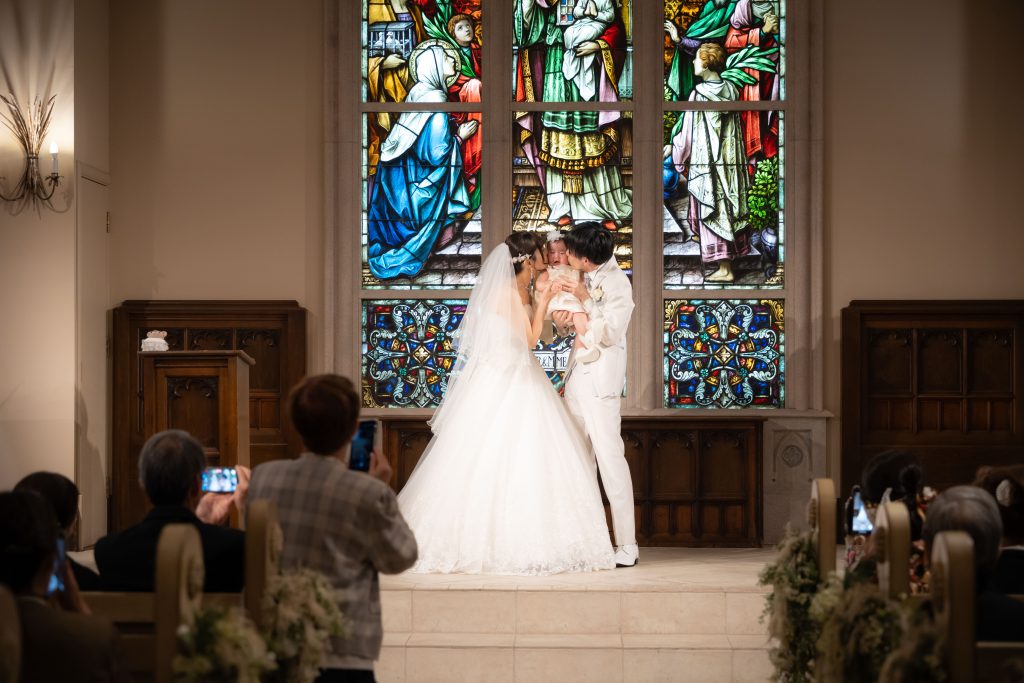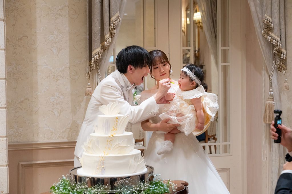 ご家族にはリングガールをお願いし、誓いのキスやファーストバイトも家族ならではの形に、温かい癒しの時間に。