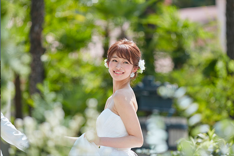 SADOYAのドレスサロンでは、エリア随一のブランド取扱数が自慢。数あるラインナップからお気に入りの一着をかならず見つけていただけます。もちろんマタニティ対応も完備しているので、おめでた婚、授かり婚などで、サイズに不安のある方もご安心ください。
