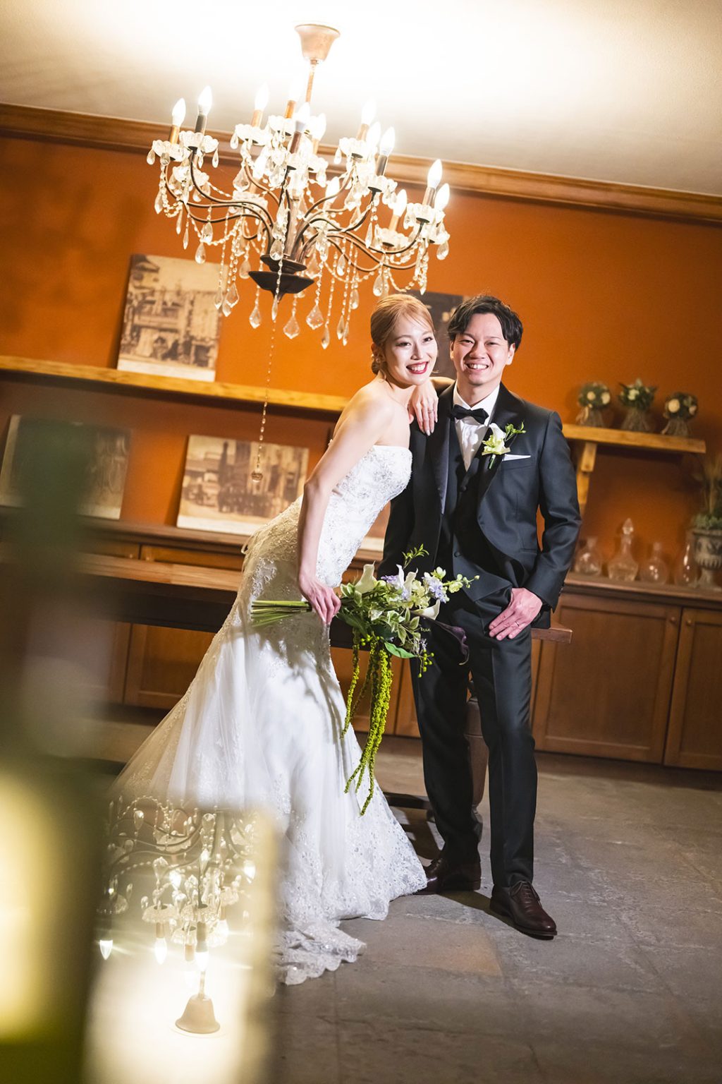 大切なゲストを結婚の承認にした人前結婚式。地下セラーに灯をともした幻想的な雰囲気は、まるで映画のワンシーンのような美しさです。