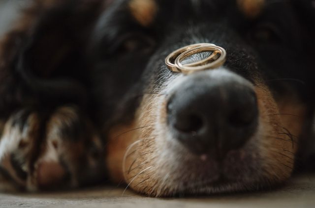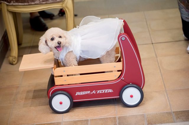 ワンちゃんに、結婚指輪を運ぶ大切な役割をおこなってもらう、「リングドック」